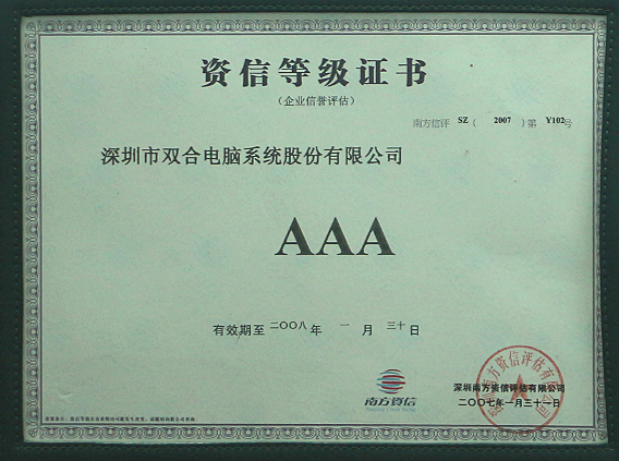 AAA Credit Rating certificate